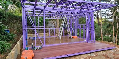 Windows in, Colorbond on, sliding door installed, trim fitted.