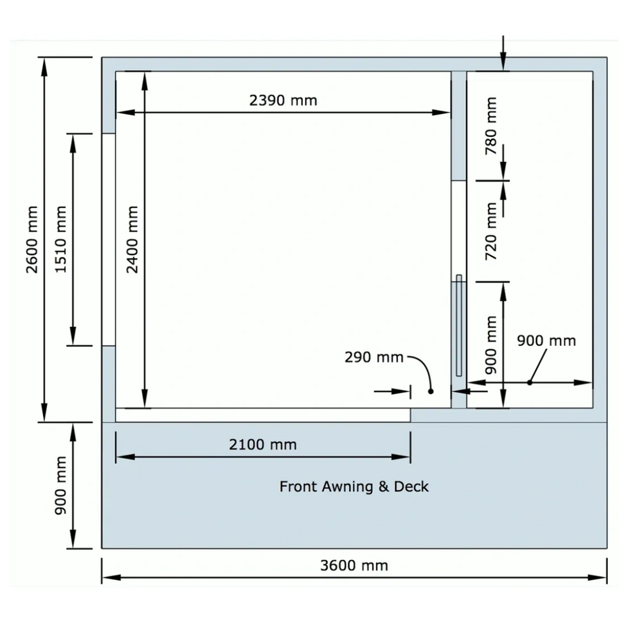 3.6 × 2.6m (9.36m²)