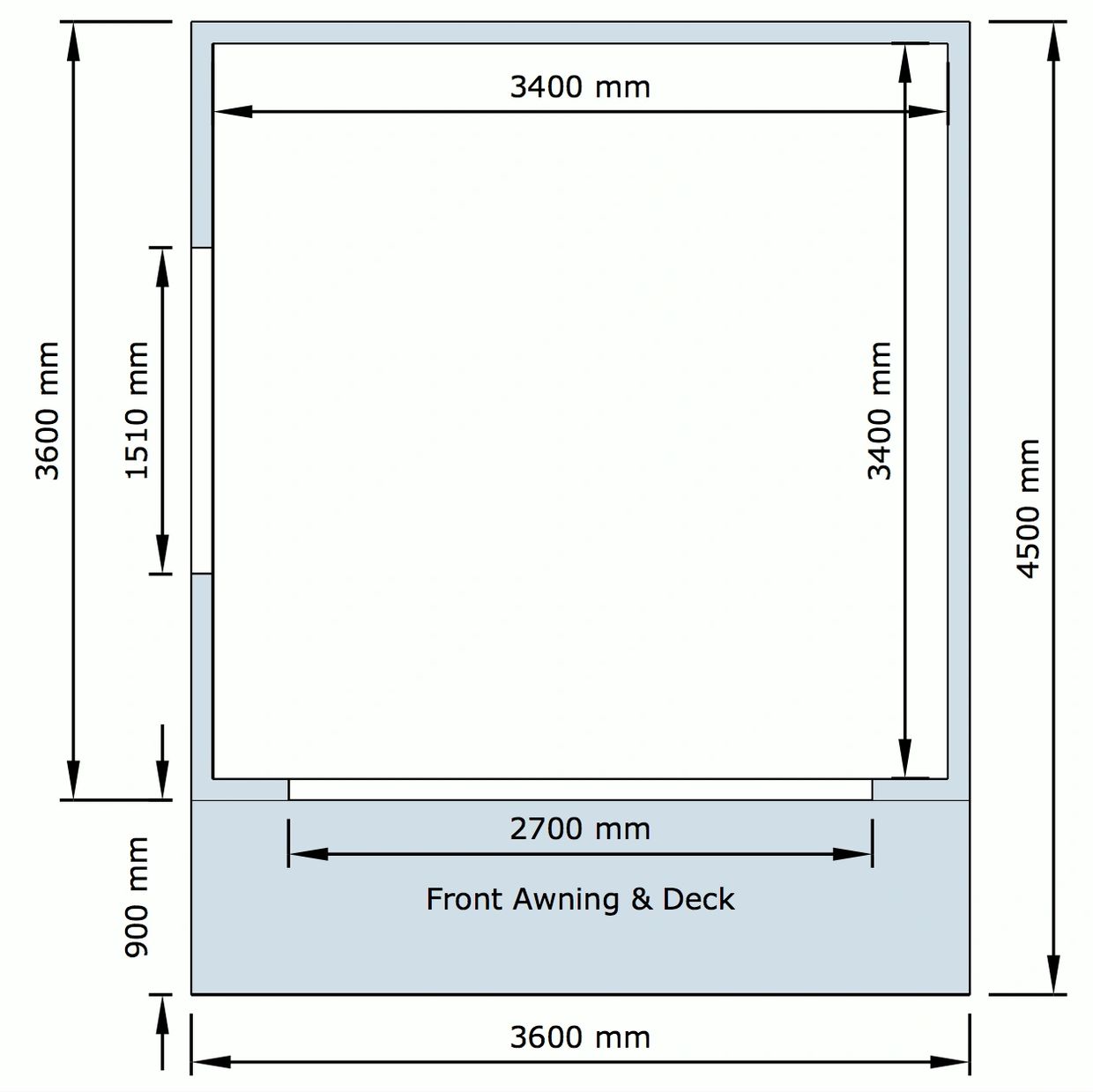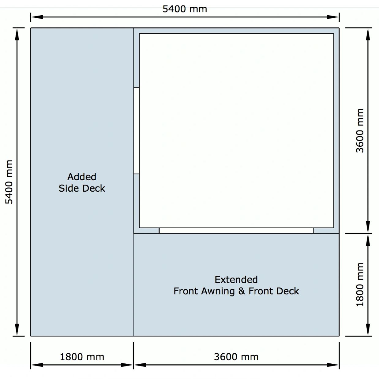 3.6 × 3.6m (12.96m²)